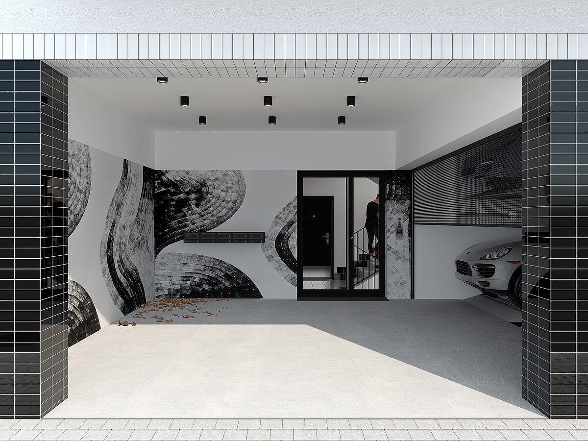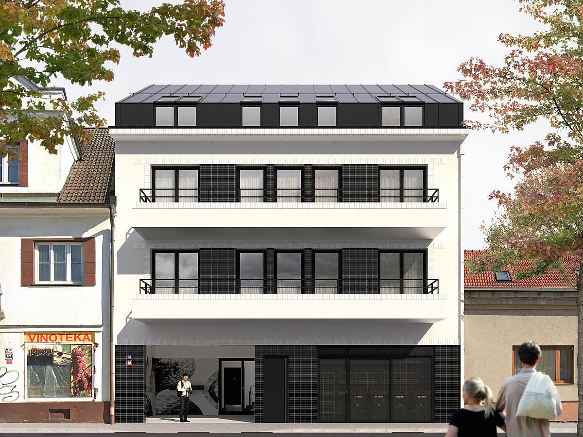 Opaxit je lisované neprůsvitné sklo, které se od počátku 20. století používá k obkládání fasád i interiérů. Technologie vznikla ve Francii a Německu, do Brna však dorazila v době meziválečného stavebního rozmachu a navázala na silnou moravskou sklářskou tradici. Barevné skleněné desky se staly charakteristickým prvkem brněnské moderny a dodnes připomínají období, kdy město patřilo k průkopníkům progresivních materiálů. Na tuto tradici rezidenční architektury navazujeme i v návrhu tohoto bytového domu, jehož fasádní a interiérové detaily nesou odkaz tohoto významného prvku.