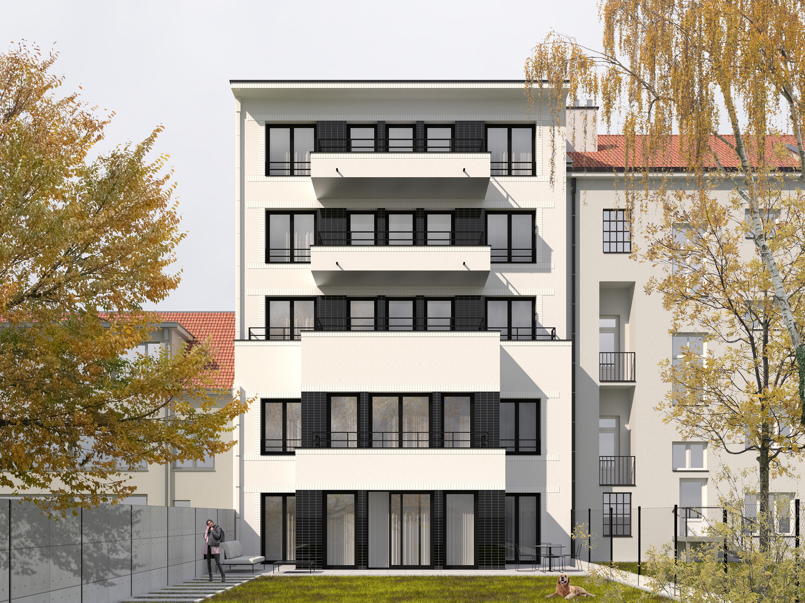Všechny byty mají dispozici 3+kk a jsou navrženy s důrazem na prostor, světlo a soukromí – na každém podlaží jsou maximálně dva byty. Byt v přízemí nabízí velkorysou zahradu. Ostatní byty disponují prostornými balkony orientovanými do parku nebo do klidné zahrady. Nejvyšší podlaží zaujme velkým prosklením s výhledem do parku. Standard zahrnuje dřevěné podlahy, bezprahové přechody, trojskla a plně vybavené koupelny – s vanou nebo sprchovým koutem dle konkrétní dispozice.